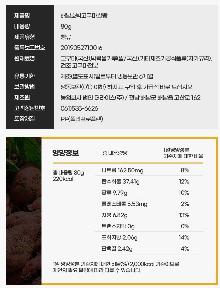 해남 호박 고구마쌀빵 10개입