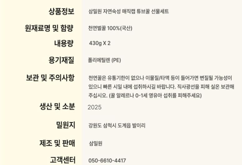 [삼밀원] 자연숙성 튜브꿀 선물세트