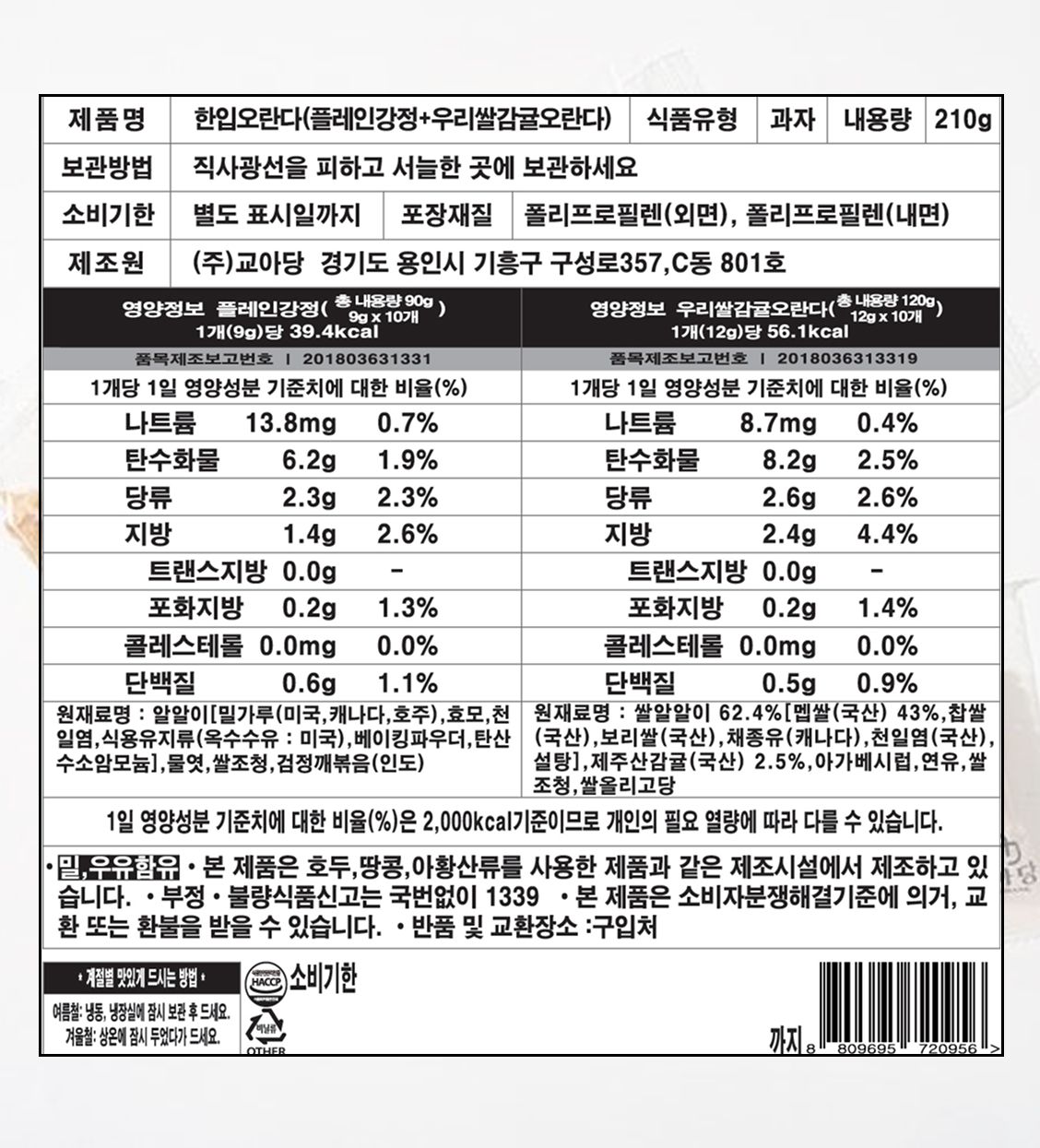 한입오란다(플레인강정+우리쌀감귤오란다)