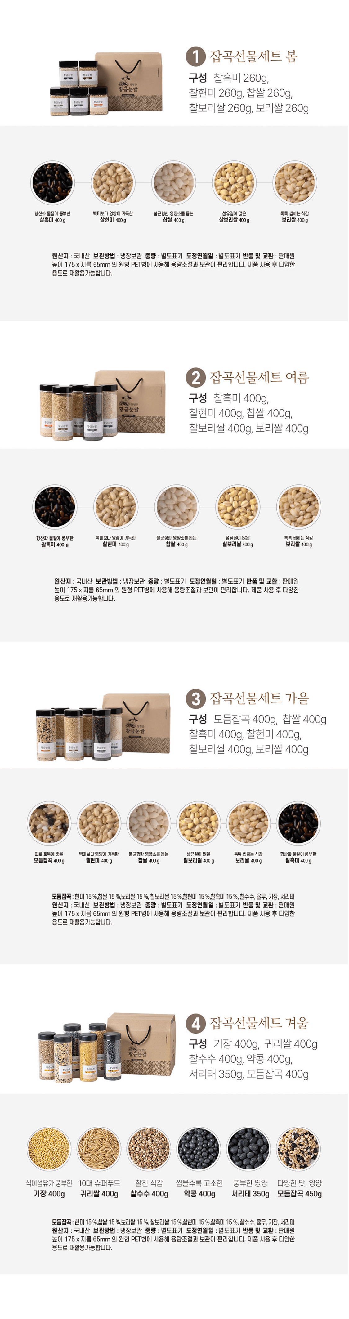 프리미엄 잡곡 선물세트 4종(봄/여름/가을/겨울)