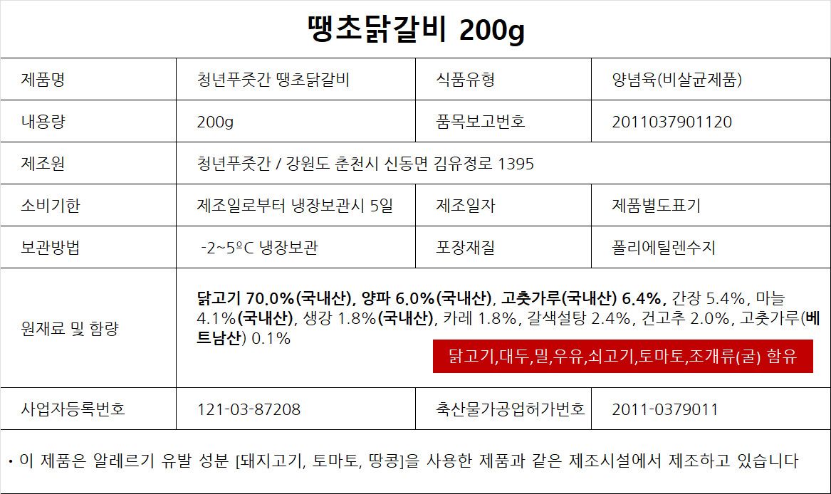 입맛 살려주는 깔끔한 매운맛 땡초 닭갈비 2봉 400g