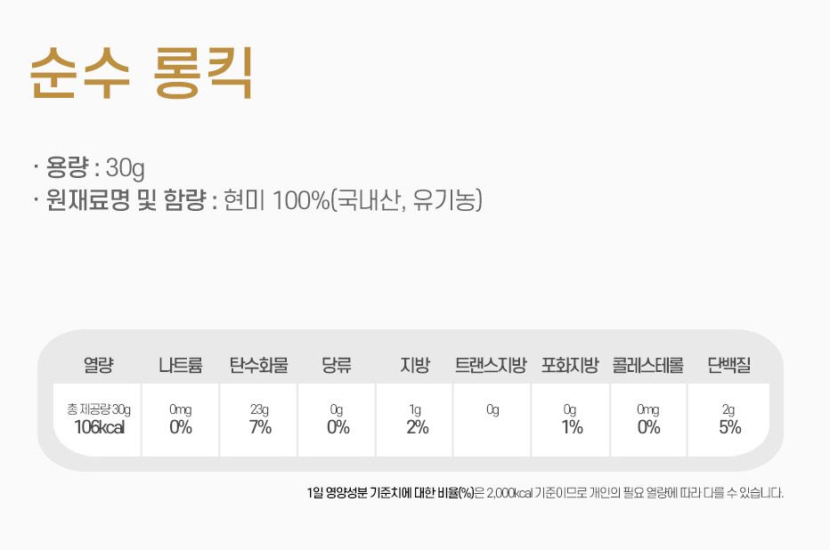 국내산 유기농 현미를 그대로 담아 건강하고 맛있는 과자를 만들었어요. 특히 맛 좋기로 유명한 장성에서 난 쌀을 사용해 기름에 튀기지 않고 열로 팽창시켜 만들며, 밀가루나 방부제, 합성착색료 같은 식품 첨가물을 전혀 넣지 않고 원재료만을 사용합니다.