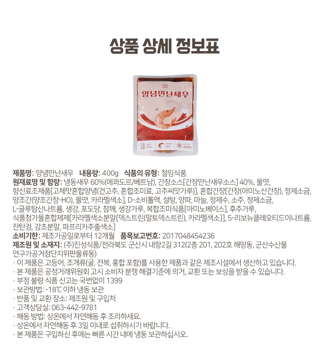 편리하게 일식집에서 맛보던 통통한 새우의 그 맛을 그대로 집에서 느껴보세요. 양념새우장에는 매콤한 양념을 넉넉히 담아서 다른 요리에도 활용할 수 있어요. 비빔밥, 비빔면의 소스 등으로 새우의 풍미를 담은 양념을 다양하게 활용해 보세요.