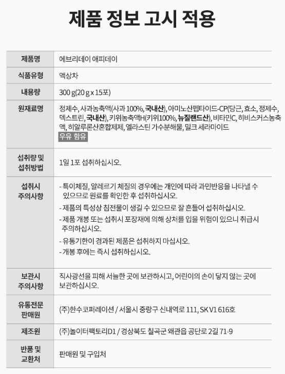 하루 한 포로 챙기는 건강 국내산 사과 농축액