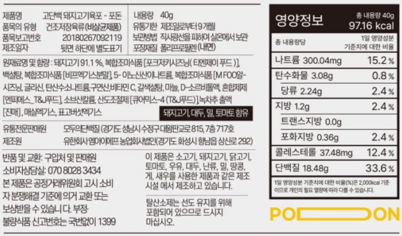 올해 건강하고 멋진 몸을 만들겠다는 목표를 세우신 분들 많으시죠? 단백질 섭취가 중요한 건 알지만 챙겨 먹기가 쉽지 않잖아요. 포돈은 이렇게 질리지 않고 간편한 단백질 섭취를 원하는 분들을 위해 탄생했어요. 부드러운 돼지고기 육포인 포돈과 함께 쉽고 맛있게 식단 관리해 보세요!