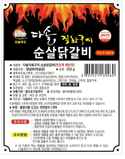 신선한 브라질산 닭 순살 정육을 1차로 오븐에 굽고, 2차 전용 팬에 굽고, 3차로 석회에 구워 닭갈비의 쫄깃함과 진한 불향을 한층 더 깊게 느낄 수 있습니다. 국내산 고춧가루, 마늘 등을 사용하여 2개월 이상 숙성 과정을 거친 비법 양념을 닭갈비에 입혀 맛있게 맵고 먹으면 먹을수록 당기는 맛이랍니다. 닭갈비와 함께하면 잘 어울리는 재료들을 추가해서 함께 드시면 더욱 맛있게 즐길 수 있습니다.