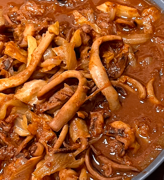 바다에서 잡아 올린 즉시 배에서 바로 급속 냉동한 ‘선동 오징어’ 만을 사용해 더욱 쫄깃하고 탱글탱글한 식감을 자랑합니다. 화끈한 매운맛의 특제 매콤 양념으로 맛에 한 번, 또 매운맛에 두 번 놀라는 맛을 경험할 수 있습니다. 순한 맛보다 매운맛을 좋아하시는 분들이라면 매운맛으로 드셔보세요. 소스 양이 넉넉하여 덮밥으로 먹거나 삶은 소면을 곁들여 함께 먹어도 좋습니다.