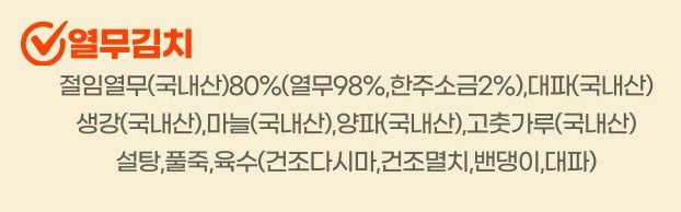 인공 색소, 착향료, 첨가물을 넣지 않고 우리나라에서 자란 농산물로 만든 열무김치입니다. 농가와 계약하여 질 좋은 열무를 공수하여 천일염에 푹 절인 뒤 풋내를 제거하고 비법 양념에 잘 버무렸어요. 시원하고 깊은 맛이 특징인 열무김치는 사계절 내내 숙성 정도에 따라 다양한 맛을 가지고 있습니다. 불순물을 걸러내 정제한 한주소금을 사용하여 더욱 맛있게 절여진 열무김치를 요리와 함께 즐겨보세요.