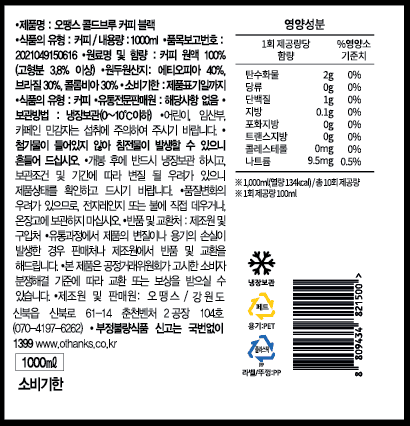 콜드브루 커피 (400ml/1L)