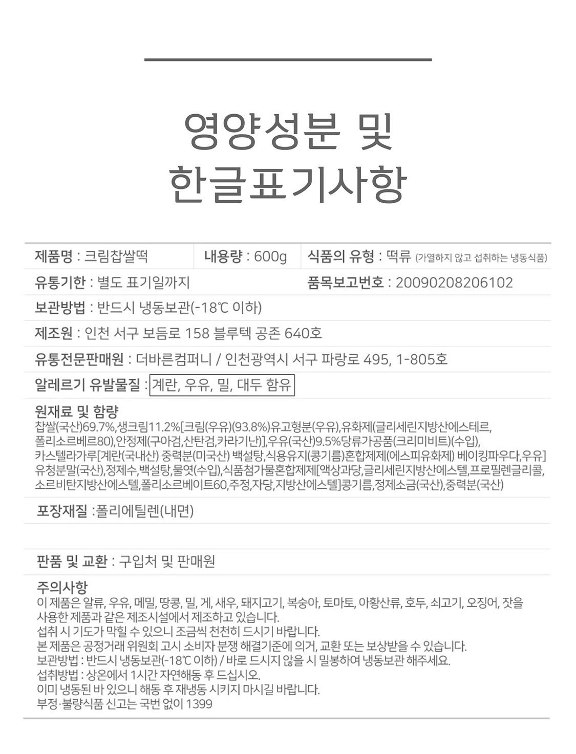 크림찹쌀떡 600g (12개입)
