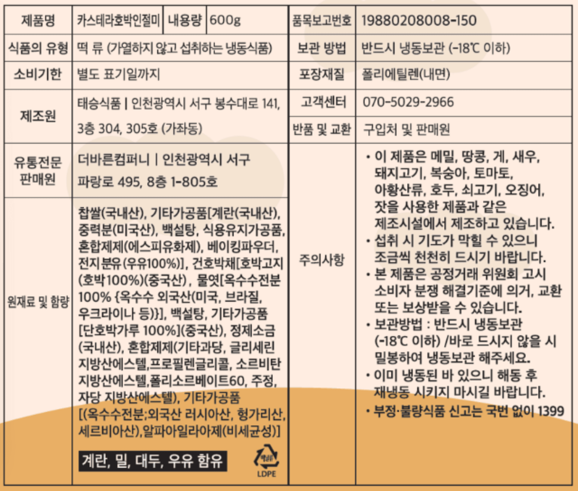 주문 즉시, 생산에 들어가는 더바른의 카스테라 호박 인절미는 100% 국산 찹쌀과 함께 만들어 쫀득하면서 쫄깃한 식감과 함께 은은한 호박의 단맛을 느낄 수 있어요. 호박고지, 호박 천연분말로 빚은 호박 인절미에 달콤함을 더한 오븐에 2번 구운 프리미엄 카스테라 가루를 묻혀 더욱 맛있고, 또 한 입 크기로 잘려있어 아침 식사, 간식 등으로 먹기에 좋아요. 냉동 보관했던 떡은 상온 2시간 해동 후에 먹으면 떡의 쫄깃하고 쫀득한 식감과 맛을 더욱 잘 느낄 수 있습니다. 떡의 포장 또한 국내 유일무이한 책 컨셉의 감성 패키지로 떡을 받는 즐거움도 있답니다.