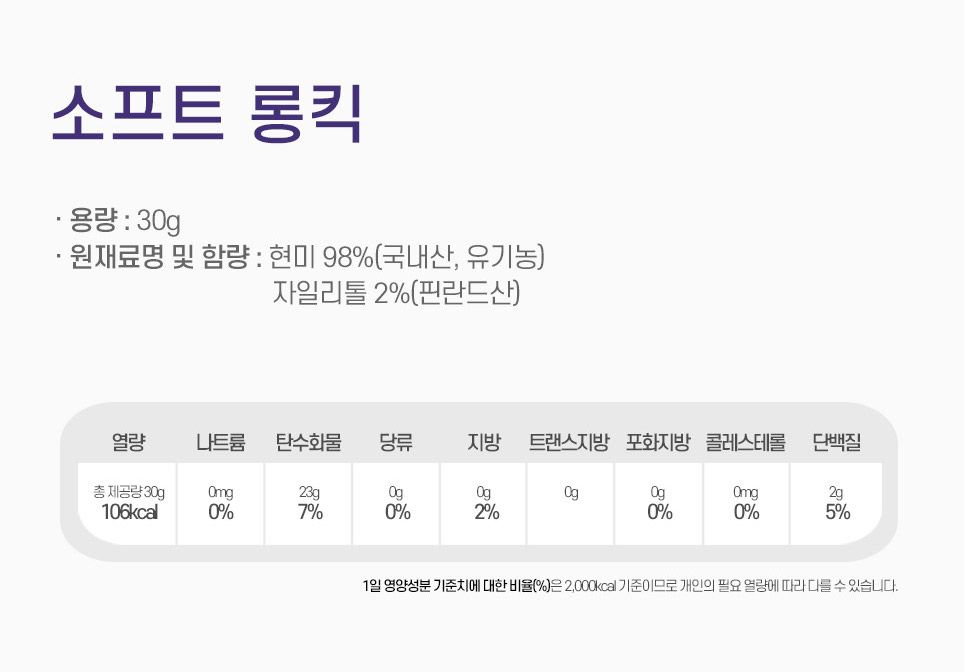 자일리톨을 첨가해 달달하지만 당류 함유 0g으로 건강하고 맛있는 과자를 만들었어요. 특히 맛 좋기로 유명한 장성에서 난 쌀을 사용해 기름에 튀기지 않고 열로 팽창시켜 만들며, 밀가루나 방부제, 합성착색료 같은 식품 첨가물을 전혀 넣지 않고 원재료만을 사용합니다.